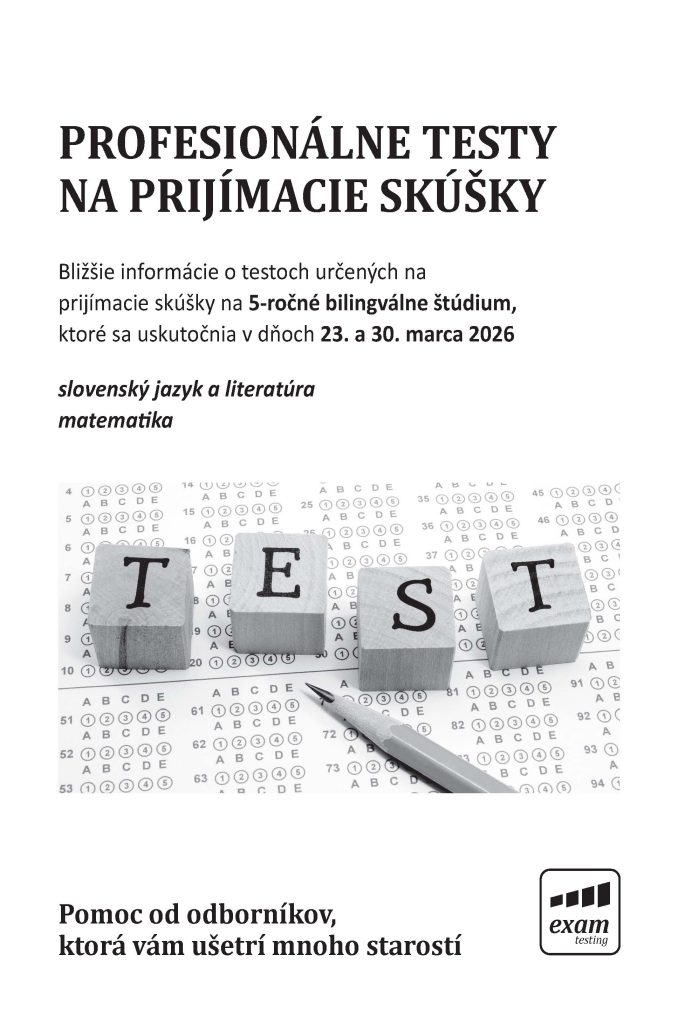 • špeciálne testy zamerané na všeobecné študijné predpoklady a všeobecné jazykové schopnosti na talentové skúšky na 5-ročné štúdium, ktoré sa uskutočnia 23. a 30. marca 2026